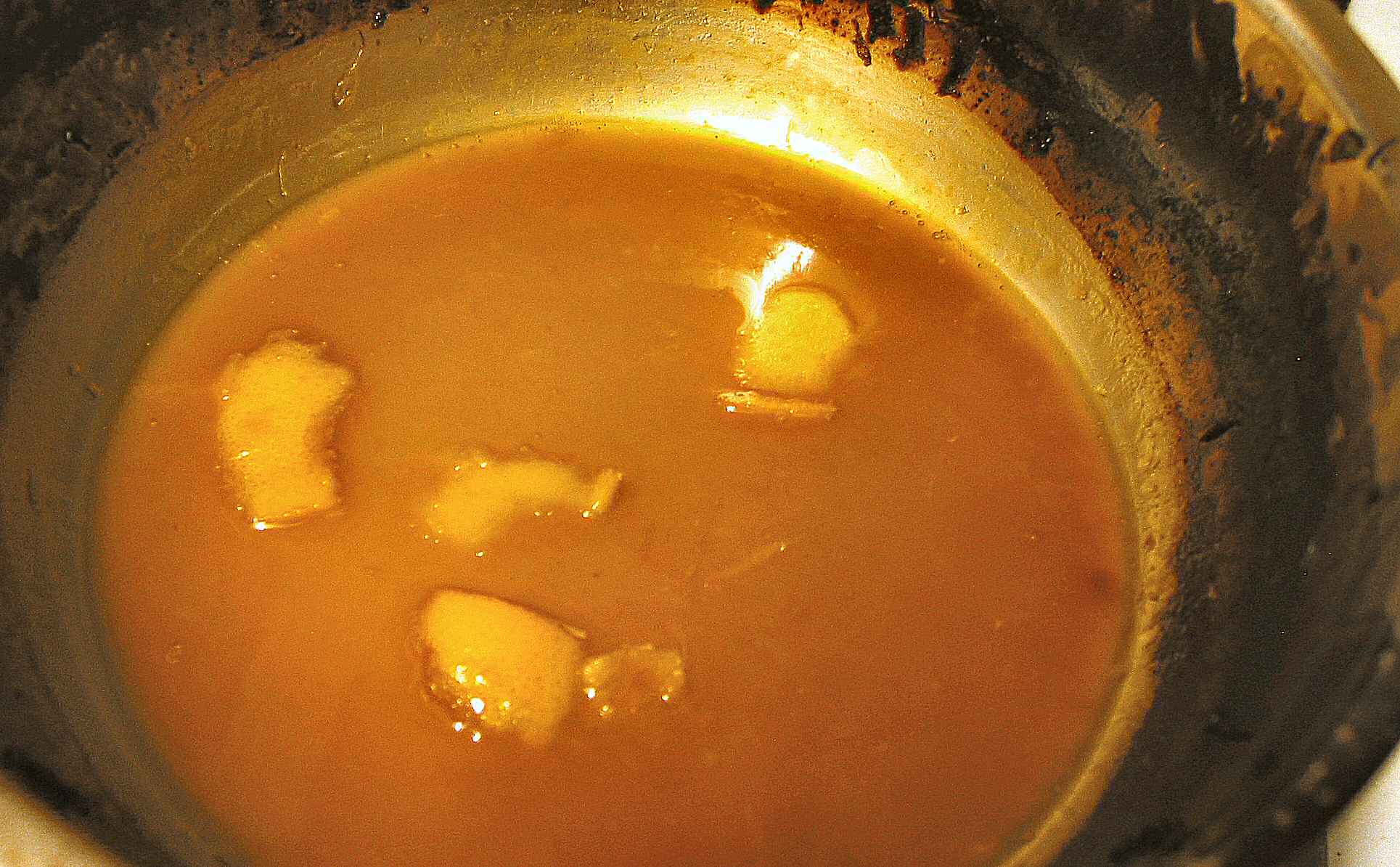 When the glaze was done, there wasn’t much, just a few spoonfuls of thickening caramel syrup. A tart, savory caramel syrup, though, with garlic and artichoke undertones. Surprisingly, very surprisingly, it was good.