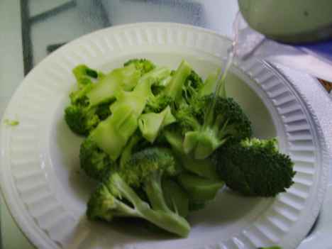 This is my preference because it’s quick, keeps the broccoli looking and tasting fresh, takes almost no thinking, and you can eat it plain or with a variety of salad dressings or sauces–mustard/yogurt, tehina, vinaigrette, bleu cheese, ranch? Tzatziki–all good. And quick. Did I mention quick?