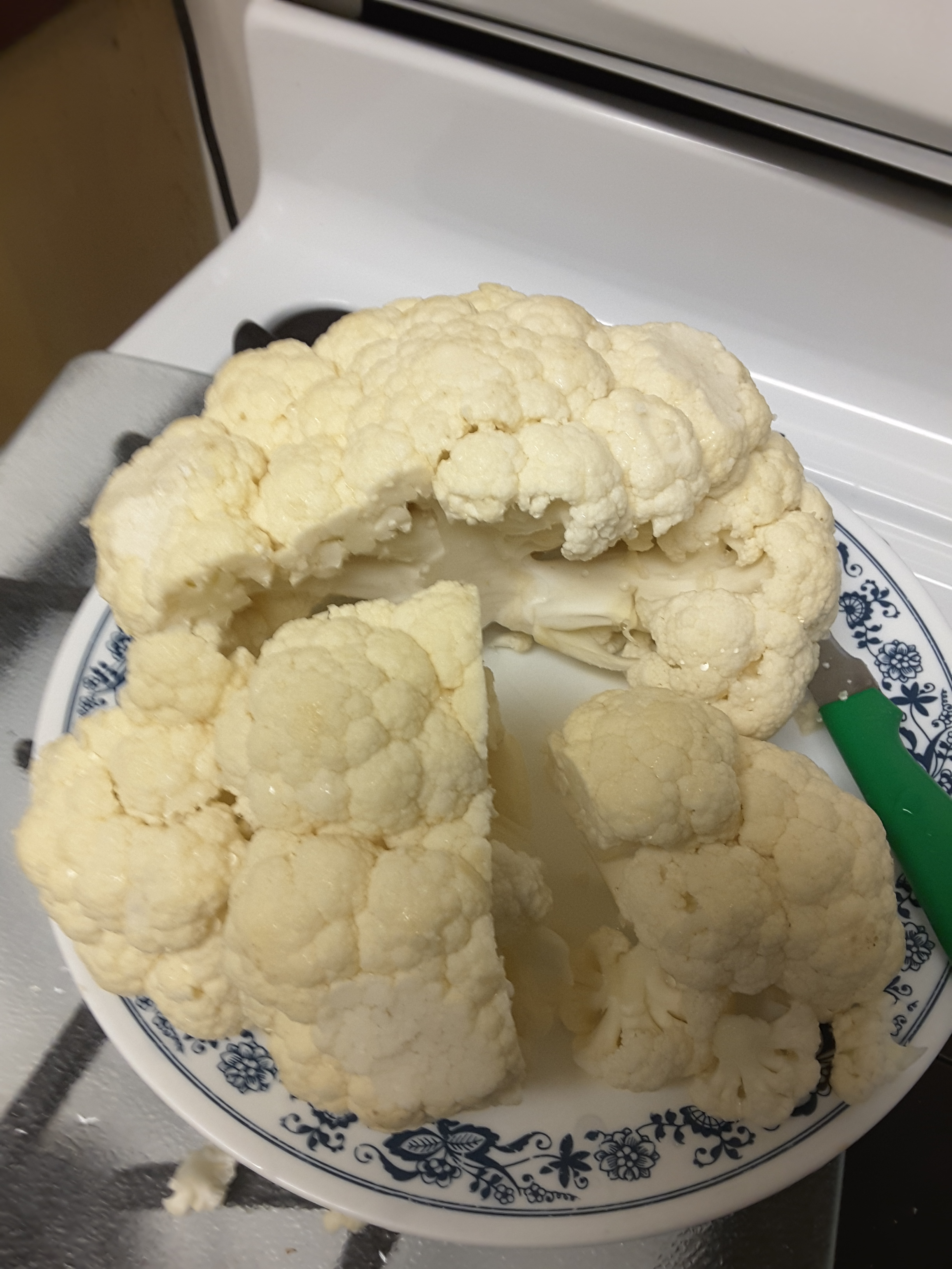 Cauliflower–1/2 to 1 large-ish head, about 2-3 cups for half a head of bite-size pieces