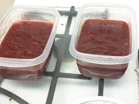 Of course I am not (that) stupid–I waited until my very sarcastic daughter, now home from college, and my very squeamish husband both hauled off to bed before opening the bag. By that time one of the 10 or 12 plums had actually succumbed and burst, but only one. The others were still holding together bravely, even the squishiest of them, and none of them were moldy or bug-infested or any other shocks, so I peeled off the stickers and rinsed them all extremely well but gently in a salad bowl, and then pitted and cut them all up to cook down for microwave jam (fruit, lemon juice, sugar to taste, nuke). I got two pounds of really vibrant, fresh-tasting and still not over-sweetened refrigerator jam out of the deal.