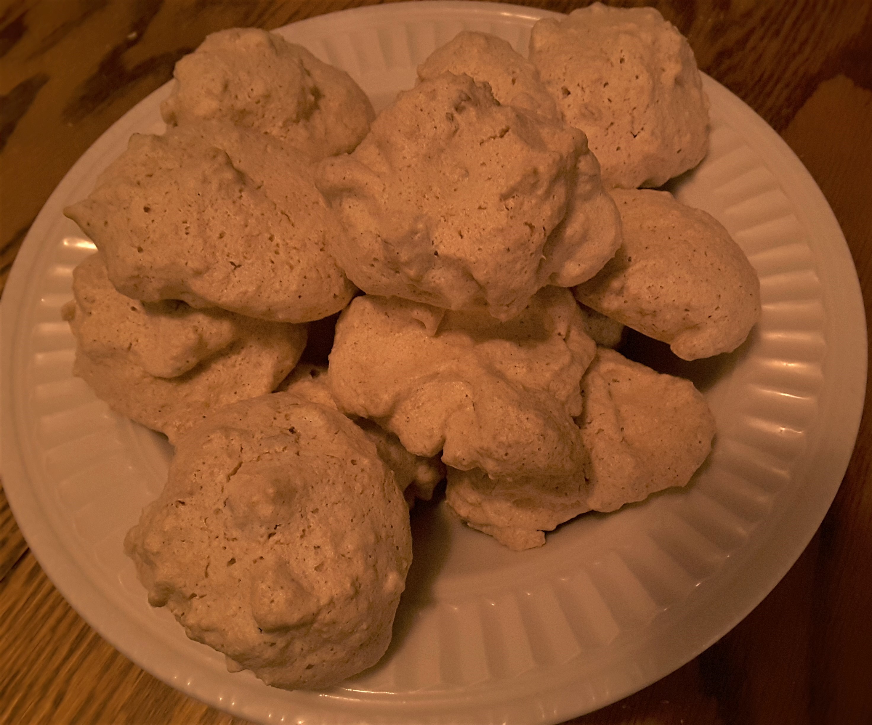And here’s what came of it–better than I expected. These lightened-up coconut…you can’t really call them macaroons. They’re closer to “macarons,” only with coconut instead of almond meal. Basically, coconut meringues.