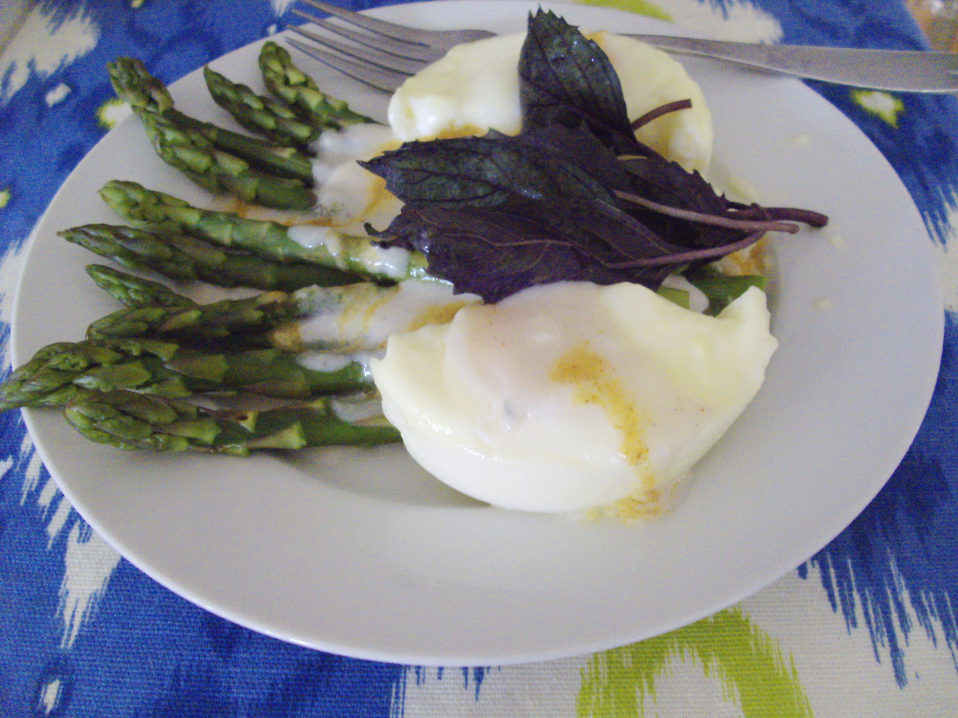 Asparagus is traditional, and as long as you don’t abuse it the way my mother [probably] still does, by boiling the regulation seven minutes, shocking in ice water, and then letting it sit around in the cold water for ages until the stalks start shredding into floaty olive-green kelp-like bits, because she’s too busy with the soup, and dinner’s not for another whole hour…..skip all that and microwave the stalks instead for 2-3 minutes and you can be a winner.